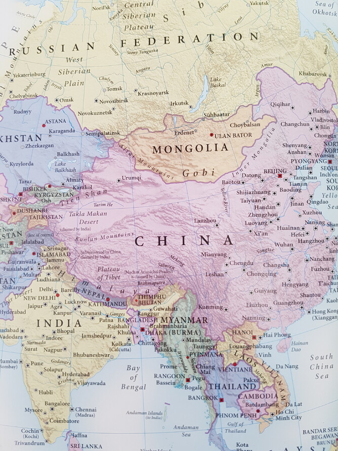 The sheer scale of the journey ahead hit me mid-conversation a while back, when I caught sight of a large-scale world map hanging on a friend’s wall. It rendered me a bit speechless. That, by the way, is no mean feat, but the sheer scale of China took my breath away. It was the first time I really got a sense for just how much earth space China covers.