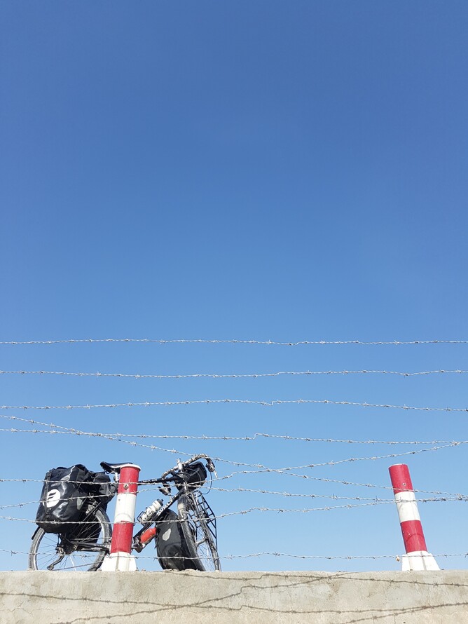 Unfortunate timing really. A police vehicle had arrived outside just a few minutes earlier, lights and siren ablaze, the policeman striding into the adjoining shop. There is only a wide doorway separating us, our sleeping mats and bicycles hidden only by the darkness. I am nervous noting his arrival. We had read earlier in the day of the strict regulations regarding the hosting of foreigners in this region. The rules are tight, the punishments harsh, the police must be notified.